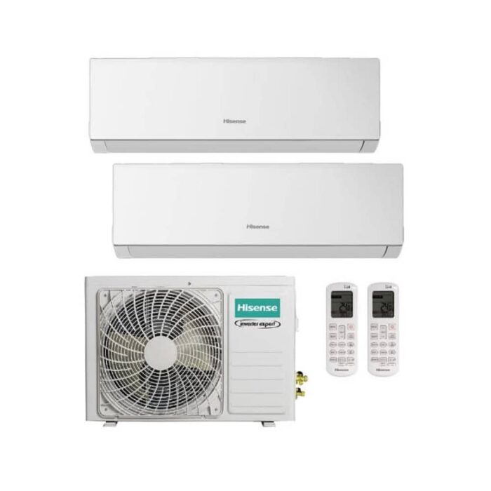 Aire acondicionado multisplit 2×1 inverter con bomba de calor hisense con unidad exterior y dos unidades interiores modelo con refrigerante r32 inverter